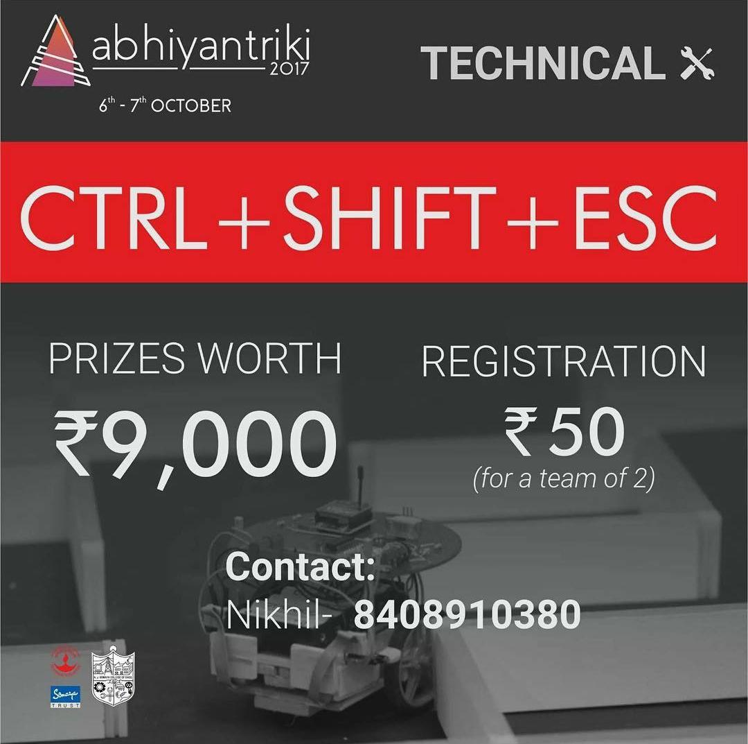 Put on your thinking caps and put your logical reasoning to test for our event, CTRL+SHIFT+ESC This 4 stage event will be a test of speed and logical reasoning at the same time. This will be a 2 member team event. So, bring your trustworthy comrade along and participate in this event!