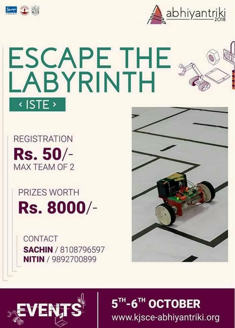 The growls of the Minotaur can be heard ringing through the narrow pavements of the labyrinth, as your bot makes it's way inside. Using a smartphone/remote, the participant has to *control a bot* inside a labyrinth filled with the unknown till it reaches an escape. The only way you can make sense of the inside is through a *live stream.* Do you have what it takes to face the terrors that lie inside? (Bots will be provided - Just Run the bot & conquer it like 'tomb raider')