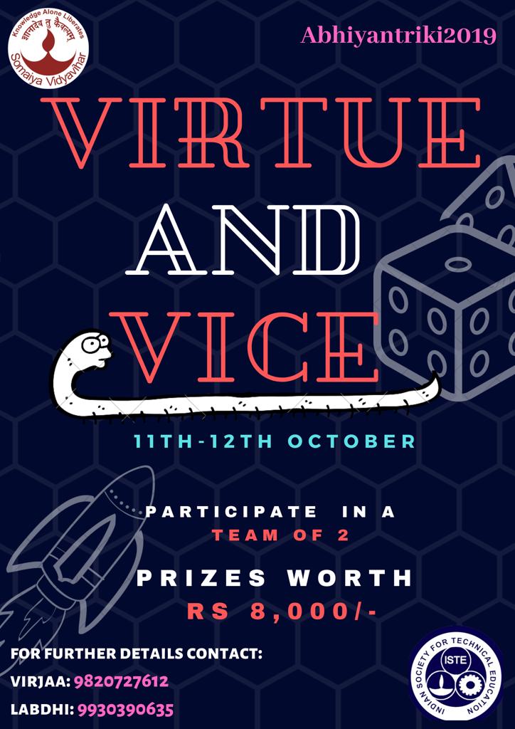 VIRTUE AND VICE is based on the concept of SNAKES AND LADDERS with its ups and downs.. so you can get your the saanp friends with you as we have team of 2.