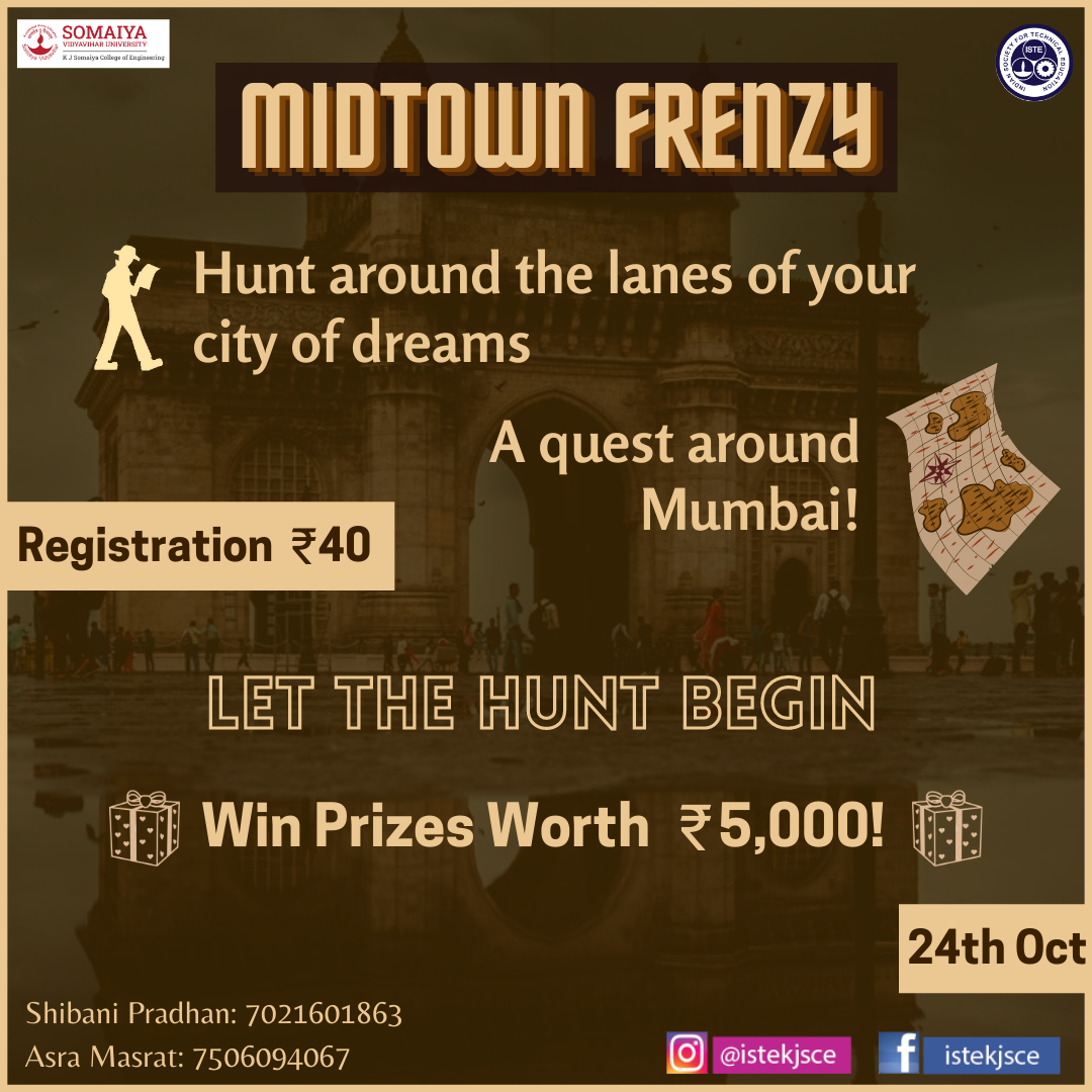Midtown Frenzy is essentially a clue-based virtual treasure-hunt that will revolve around different locations in Mumbai.