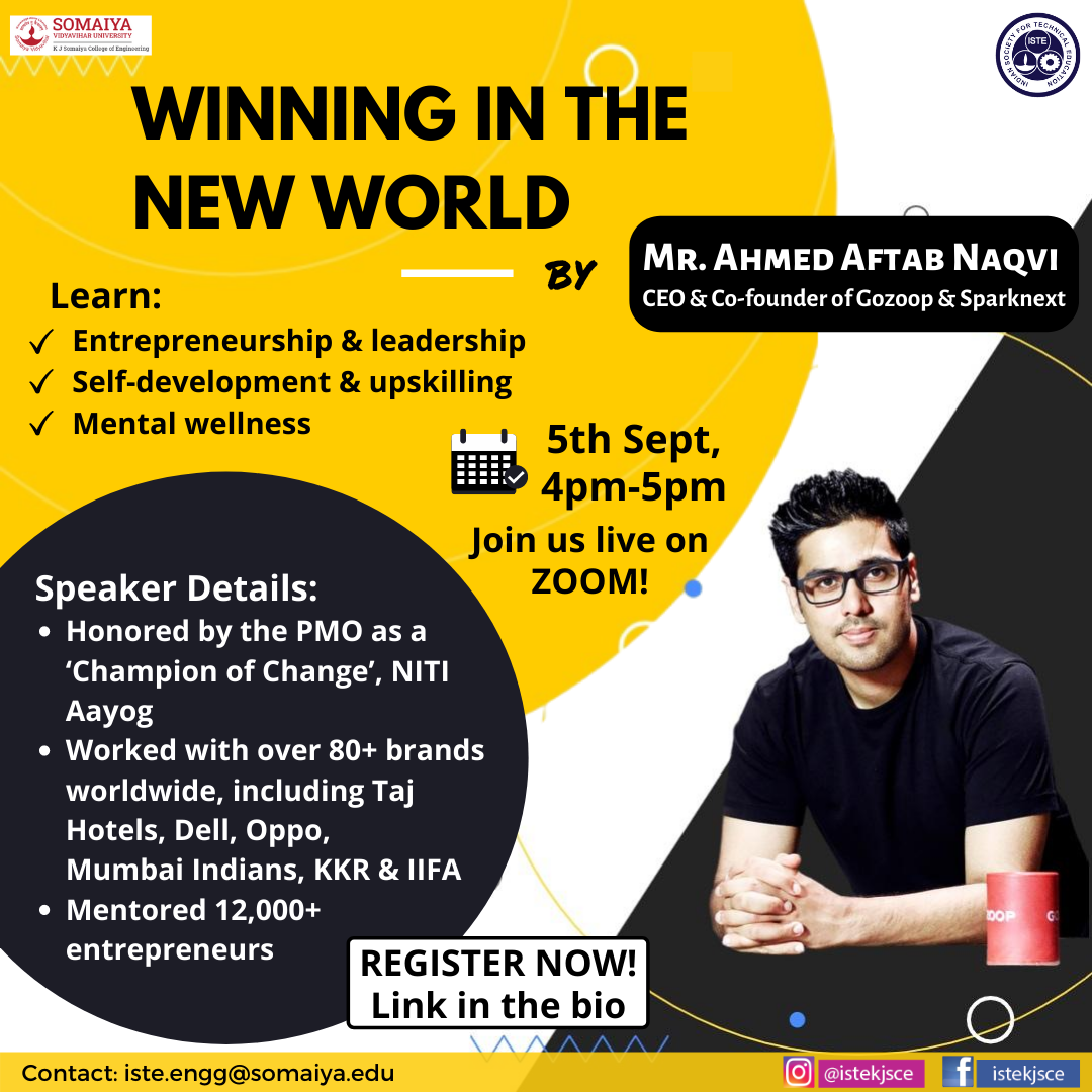 Join us for a Webinar by Mr. Ahmed Aftab Naqvi(CEO and Co-Founder of Gozoop and Sparknext) in collaboration with ISTE-KJSCE!