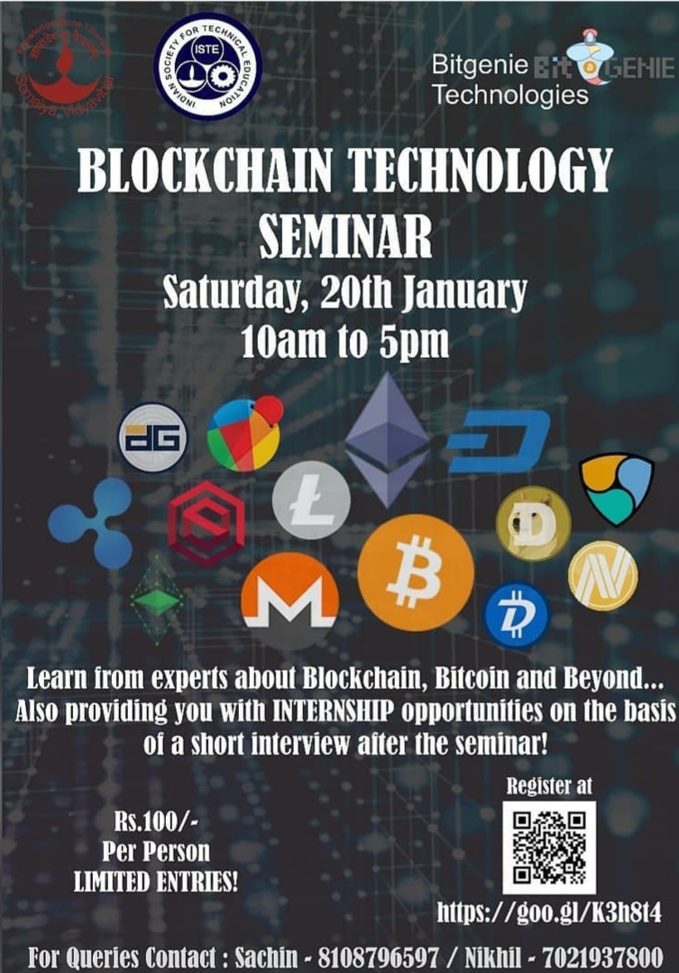 ISTE in association with BitGenie Technology Pvt. Ltd. is organizing a seminar to let you learn everything about the Blockchain Technology.