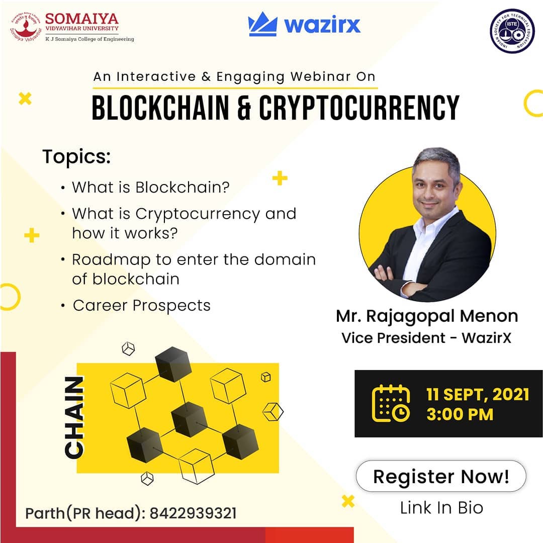 Our Speaker , Mr. Rajagopal Menon is the Vice President at WazirX - India's largest and most trusted cryptocurrency exchange.