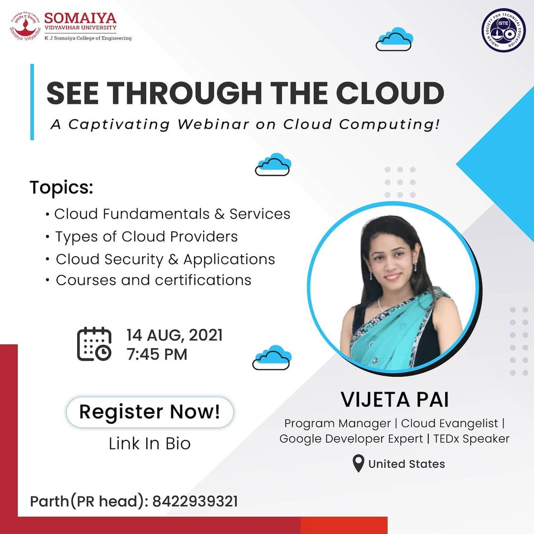 Our speaker, Vijeta Pai is a GCP Certified and Accredited Technical Evangelist who is recognized as an Expert (GDE) in Google Cloud.